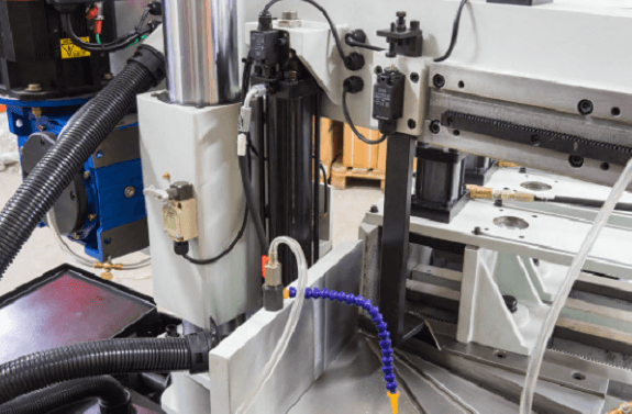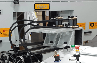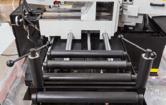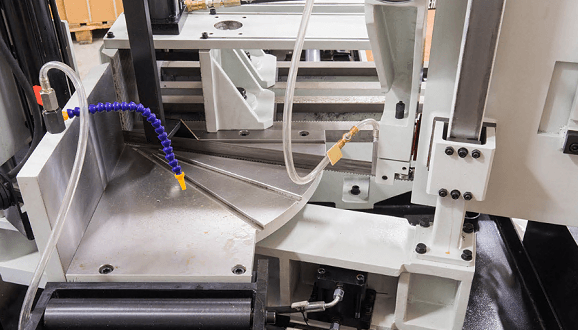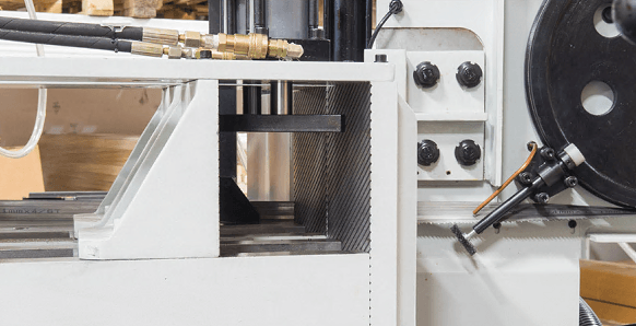 Угол пиления заготовок 90°; 15°; 30°; 45°. Поворот рамы происходит на угол кратный 1°, поворот производится автоматически от ЧПУ станка и выводится на дисплей. Рама станка поворачивается за счёт жёсткого поворотного механизма.