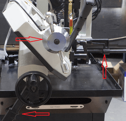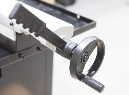 |  | Тиски с ручным зажимом, и рычагом быстрой доводки Маховик ручного натяжения ленты Мерный упор 500 мм |