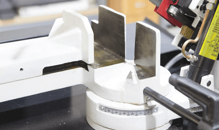 |  | Механические тиски, поворотный стол с возможностью поворота 0°…+45°…+60º по шкале. Мерный упор 500 мм. Механическая щётка для очистки полотна. |