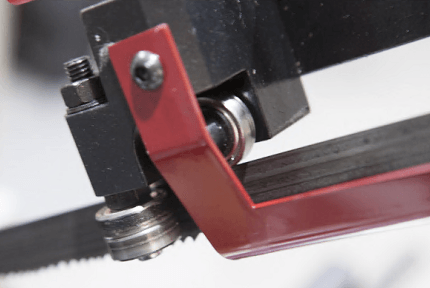 Режущий инструмент – бесконечная сварная ленточная пила. Полотно натягивается с помощью натяжного шкива. Натяжной шкив приводится в движение приводным шкивом, который в свою очередь, приводится через редуктор.