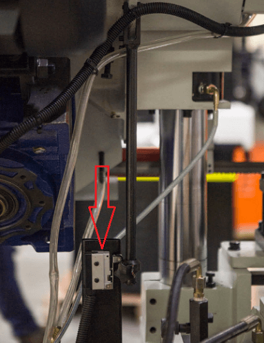 Две направляющие перемещающиеся по салазкам, для регулировки жесткости полотна относительно размера заготовки |
