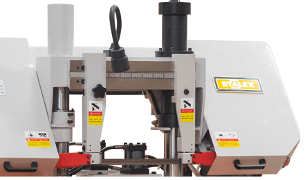 Двухстоечные ленточнопильные станки имеют 2 вертикальные стойки (колонны) большого диаметра, по которым вертикально перемещается горизонтальная пильная рама.