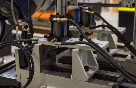 Гидравлические тиски стационарные (тиски фиксации заготовки в зоне резания) и гидравлические тиски подающие (тиски подачи заготовок в зону резки) |