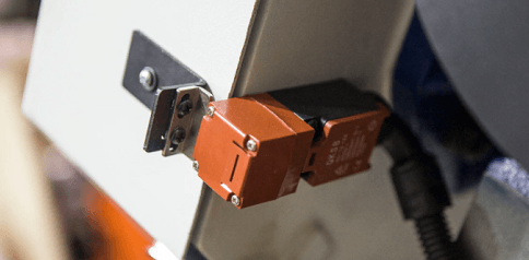 Предохранительный концевик на кожухе маховика, оберегающий станок от поломок в случае если лента повреждена |