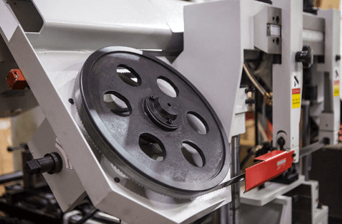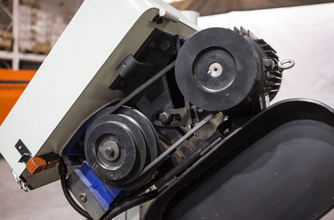 Предохранительные концевики на кожухе маховика, оберегающие станок от поломок в случае если лента повреждена Привод - гибрид (зубчатый привод + клиноременная передача) (фото №1) |