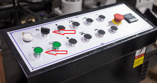 1) Переключить переключатель в ручной режим и включить гидравлическую систему