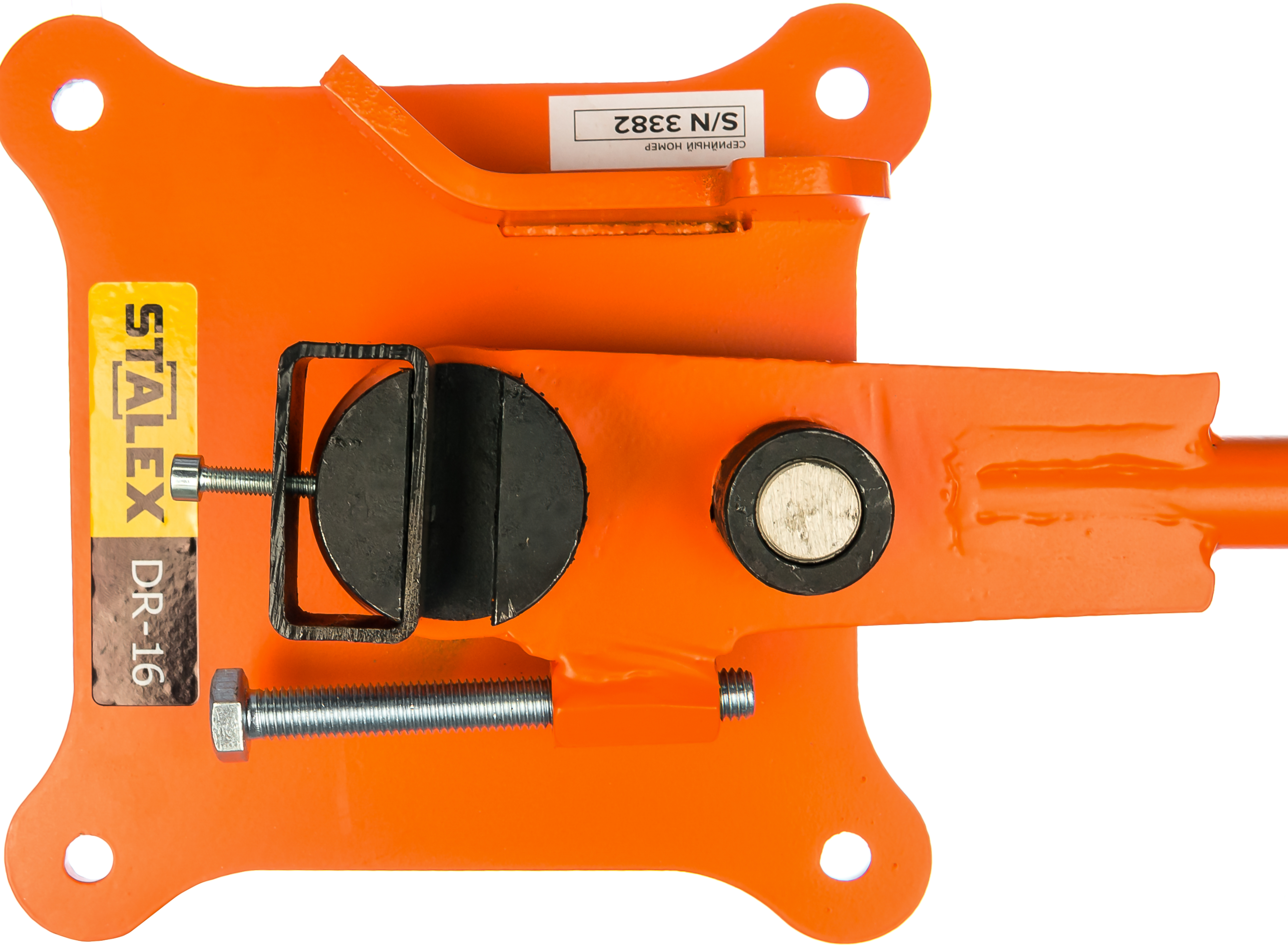 Оборудование предназначено для гибки арматуры и стальных прутьев. Ручной станок для гибки арматуры активно используется на предприятиях по изготовлению железобетонных конструкций, строительных площадках и прочих производствах. Станок представляет собой перемещаемый вал, который используется, для гибки арматуры. Обрабатываемое изделие жестко фиксируется в зажимах. Станок Stalex DR-16 снабжен ограничителем угла гиба армирующего прута, что позволят сгибать арматуру с высокой точностью и повторяемостью. Регулируемая зажимная губка позволяет фиксировать заготовку в месте сгиба, что влияет на точность гиба и позволяет работать с меньшими диаметрами прутков.