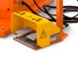 Стойка управления с двумя ножными педалями и кнопкой аварийной остановки, снабжена удобной ручкой для переноски. В поставке универсальный комплект оправок для изгибания
